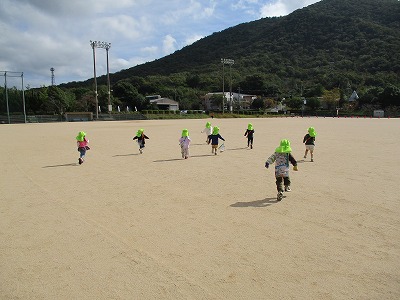 今田グラウンドを「広いね~」「よーいドン!」と思いっきり走って楽しみました。