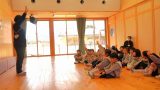 最後は、お腹に手をあてて、「息をすうとお腹が膨らむこと。吐くとお腹がへこむこと」を体験し、「大きく息を吸って、吐くってとても大事なことなんだよ」と教えてもらいました。