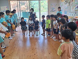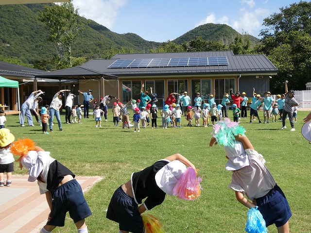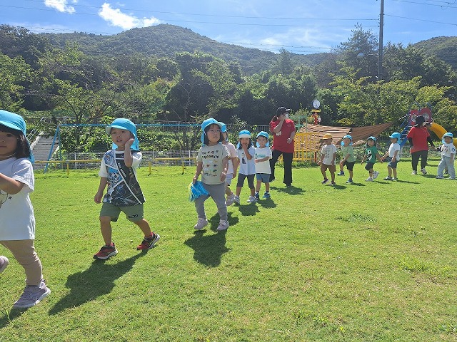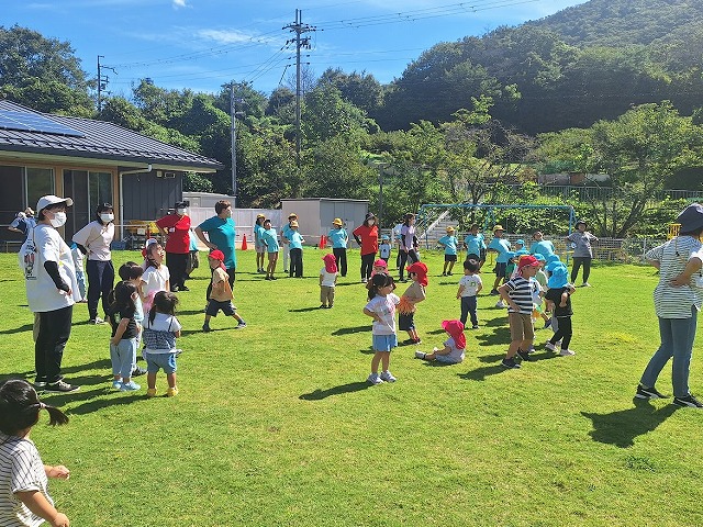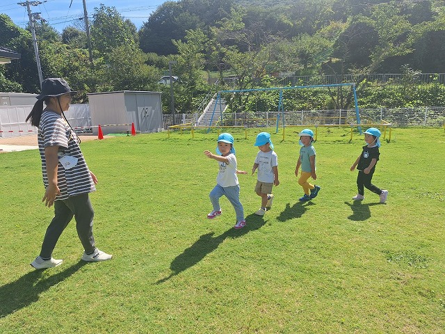 一緒に、「かえるの体操」をして、行進もしてみんな大喜び。