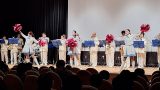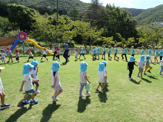 一緒に、「かえるの体操」をして、行進もしてみんな大喜び。