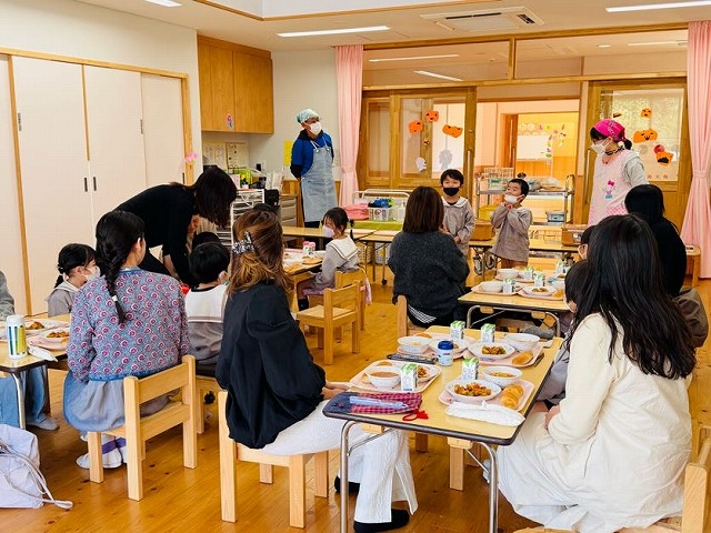 保護者の方に園での給食の様子を見ていただいたり、一緒に食べていただいてどんな給食か感じていただいたり、