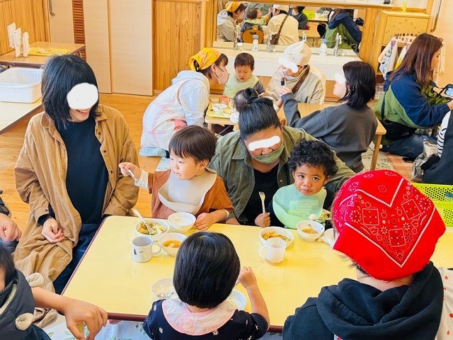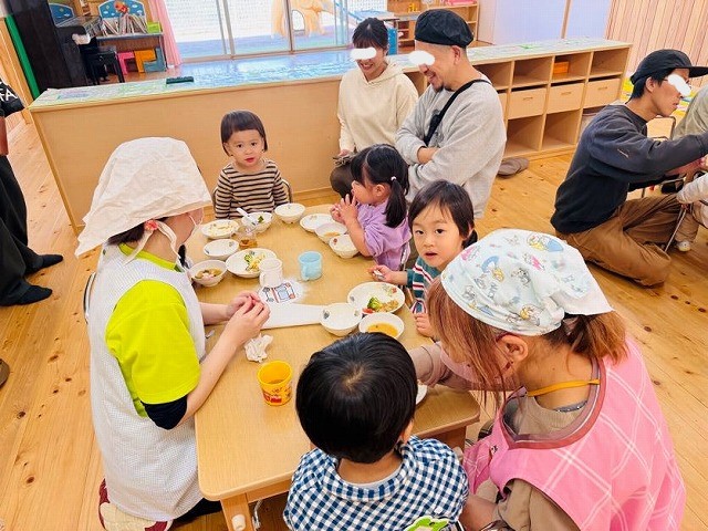 りす組は、お家の方がそばに来てくれると嬉しくて、大きな口を開けて食べることができました。お家では食べない野菜も、「自分で食べてる!」と驚かれる保護者の方もおられましたね★お家とはまた違ったお友達と一緒に食べる時間には特別なパワー?があるのかもしれませんね🎵今後も美味しく楽しく食べられる環境づくりを大事にしていきたいと思います。 お困りのことがあれば、何なりとご相談くださいね~