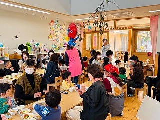 「今日、めっちゃ楽しみ!」と登園してくるなりわくわく♡していた子ども達。普段の給食の準備や、給食当番の姿も見ていただきました。また、お箸の使い方や食事のマナーも意識しながら食べようとしている姿もあったのではないかと思います!昨年とはまた少し違った姿も見ていただけたのではないでしょうか😊保護者の皆様と一緒に食べたことで、いつも楽しみな給食の時間が、さらに楽しく嬉しい時間になったようです!