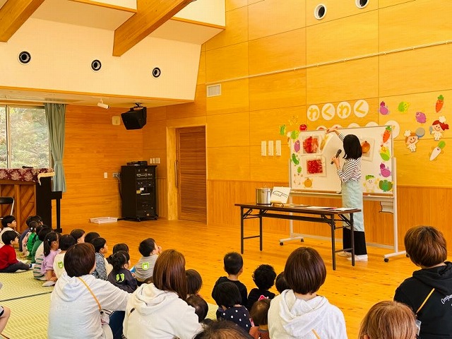 食育についてのお話を健康課・地域活動栄養士会の方から伺い「食」への興味・関心を深めていただいたり