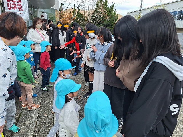 こども園の子どもたちをみて、「かっわいいー!!」と小学生。