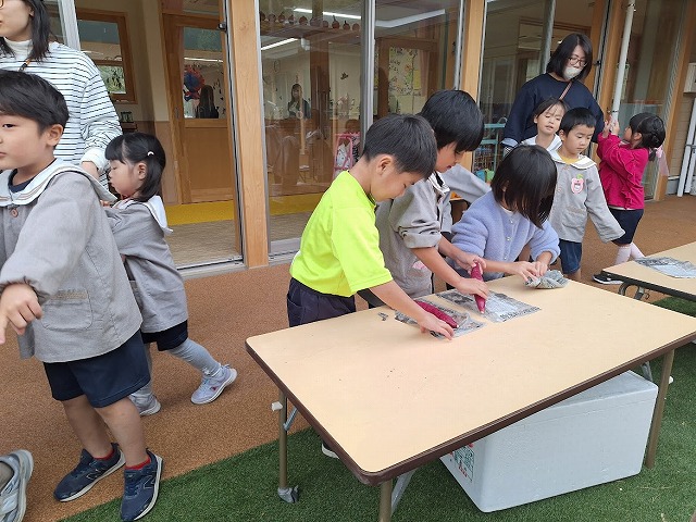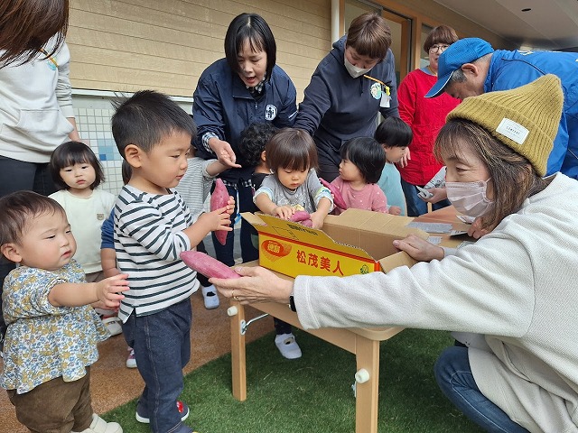 できあがったホクホクのやきいも🍠は、さくら組・ばら組は園庭で。