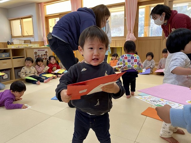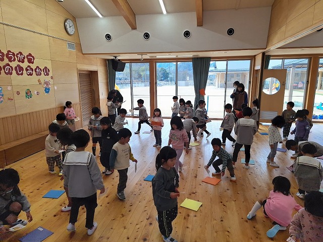 0ー5歳児みんなが年始初めて遊戯室に集まったので、最初に