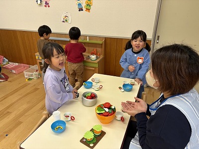その後は、ままごとやサーキット遊びで身体をたくさん動かして自由に遊びました。