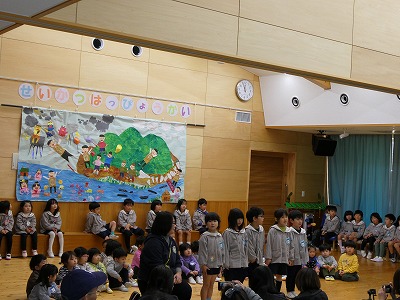 今年度の教育・保育のまとめとして、保護者の方や、地域の方に子どもたちの成長を見ていただきました。