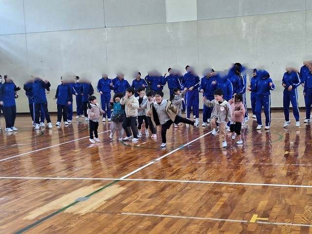 子どもたちを盛り上げようと、曲の途中で輪になってエイエイオーの形にうまく誘導してくれたり、