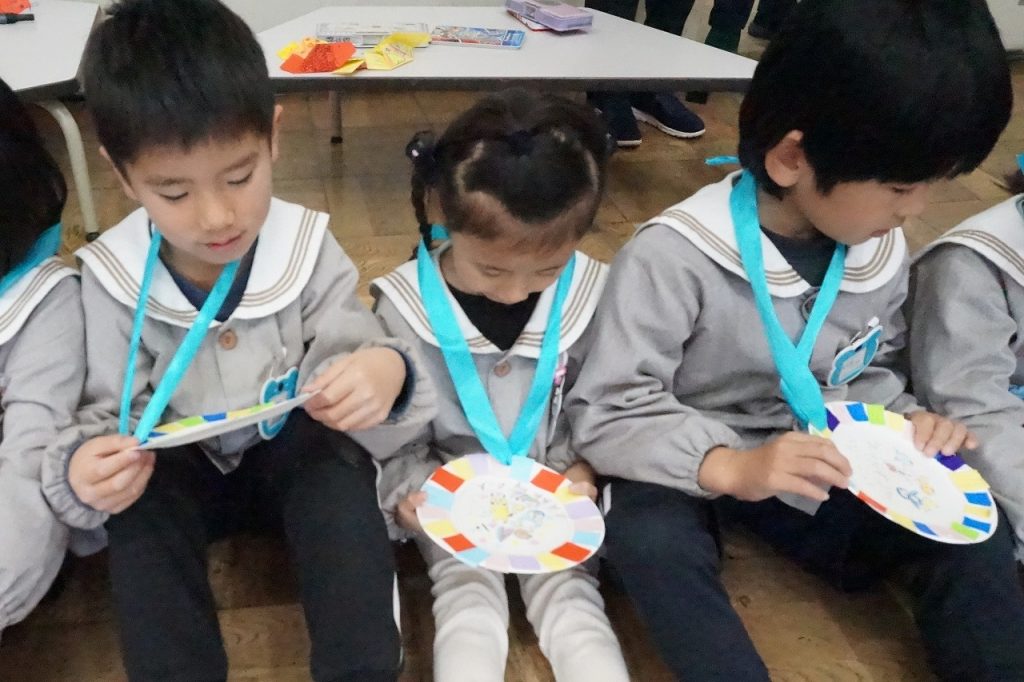 帰りには、1年生からメダルや席札のプレゼントをもらってとっても嬉しそうでした。