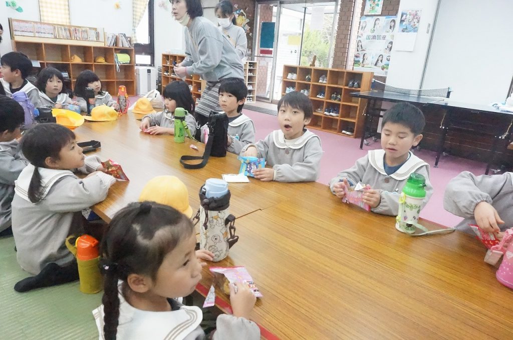 帰りに今田児童クラブにもお邪魔させていただきました!施設内を見学させていただいたり、園から持参したおやつを食べてゆっくり休ませていただき、パワーチャージ✨どんなところで過ごすのかが分かり、児童クラブの先生方があたたかく声をかけてくださって、安心が増えたようです(*^-^*)