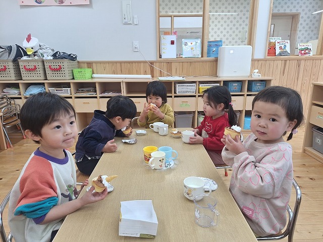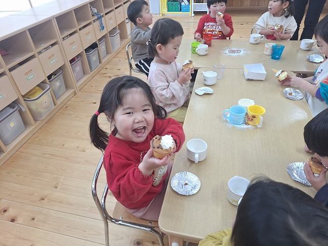 大きな口をあけて、ほおばるみんな口のまわりは、クリームがいっぱい♡