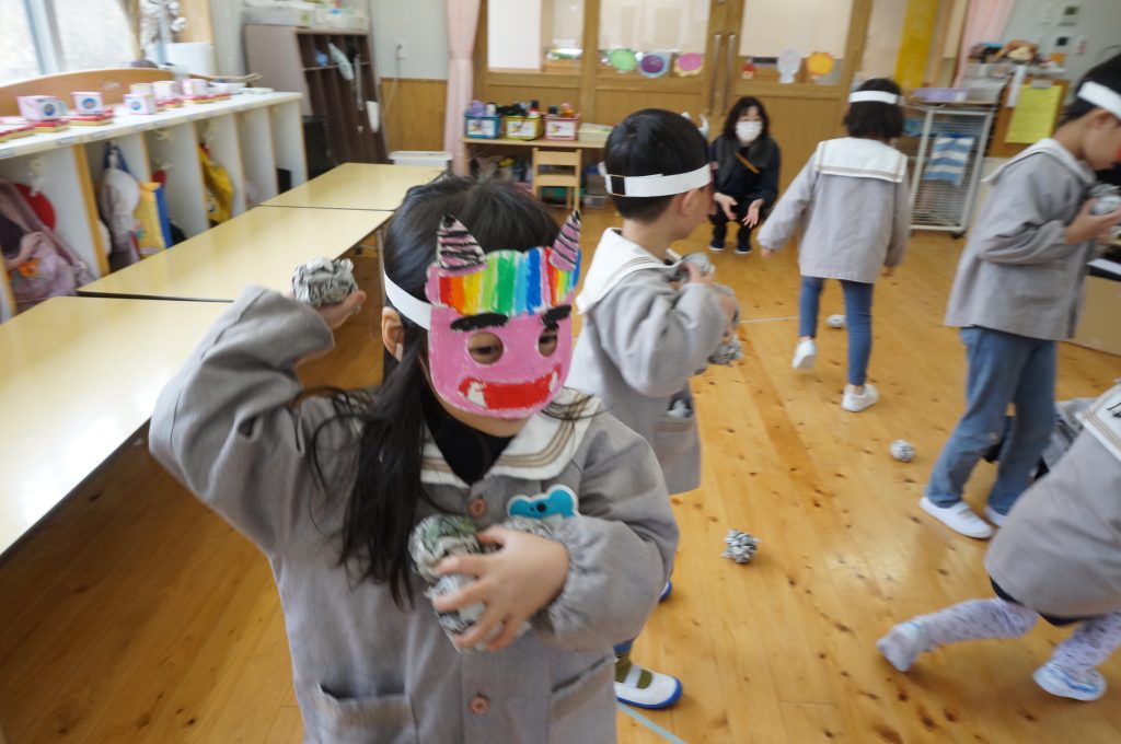 今年は、各クラスごとに豆まきをしました。